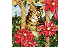Картина стразами АЖ-1036 "Котенок в цветах"ТМ"Алмазная живопись" (мозаика) Россия 42х41см РАСПРОДАЖА