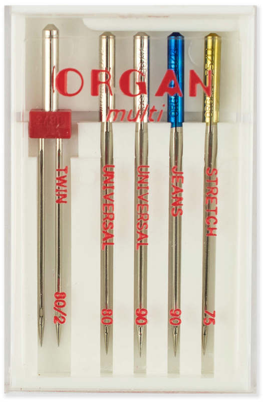 Иглы для БШМ "ORGAN" Multi Box Набор ассорти 5шт.джинс(90) стрейч(75) станд(80,90) двойн(80/2) Блист