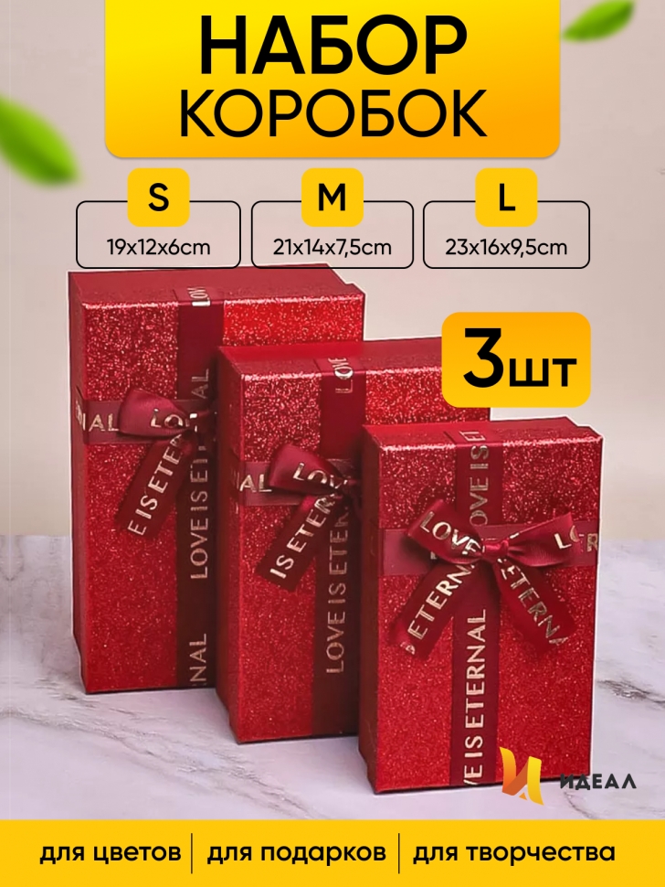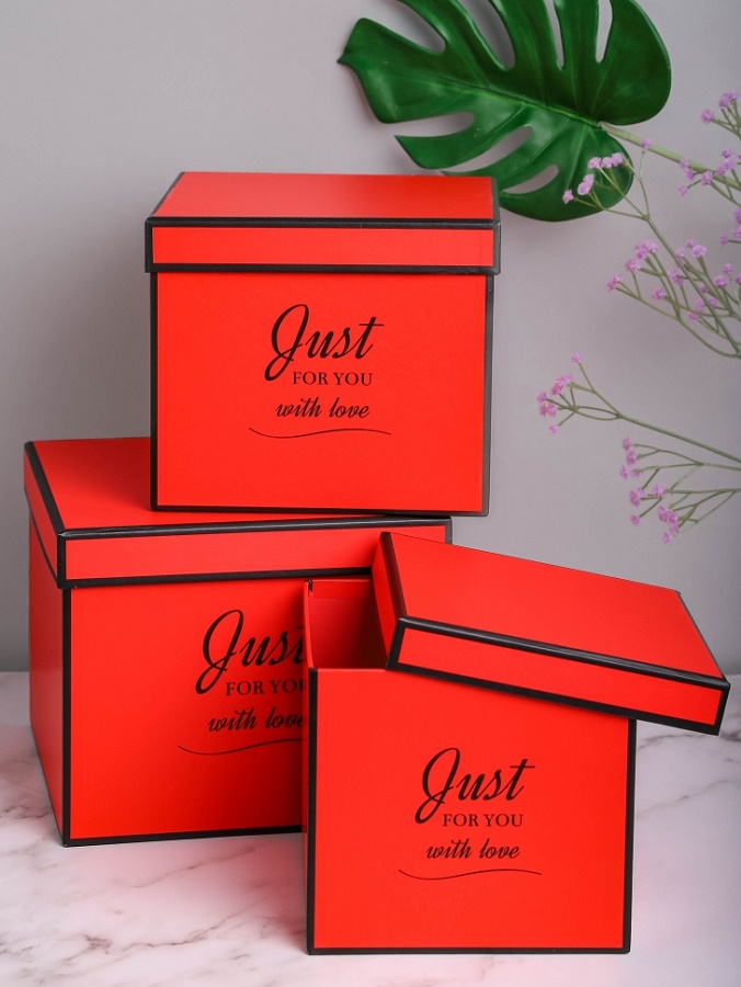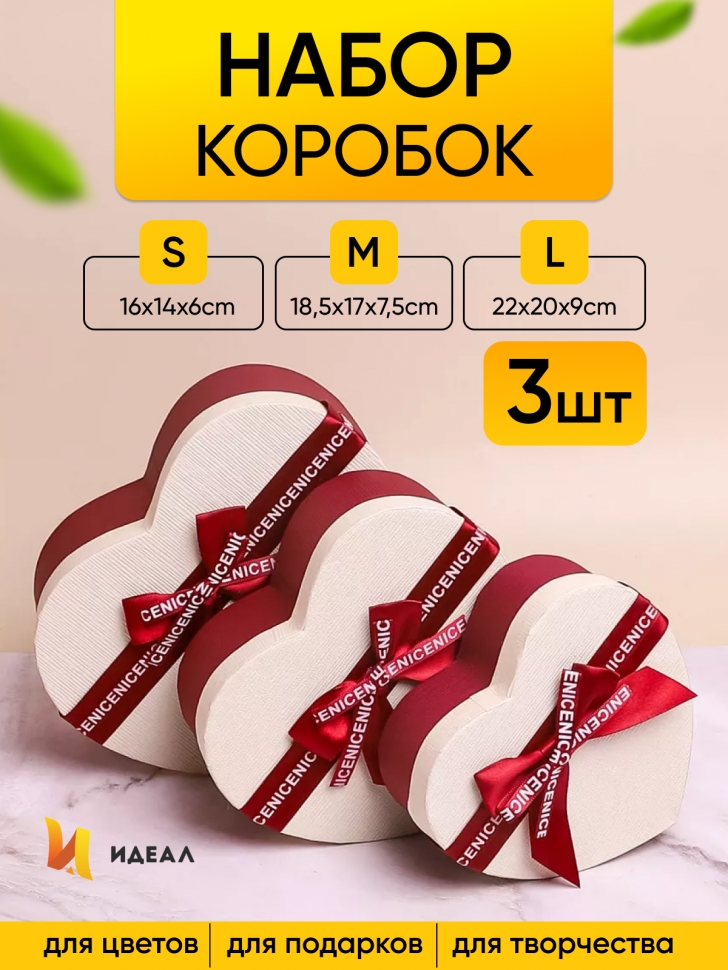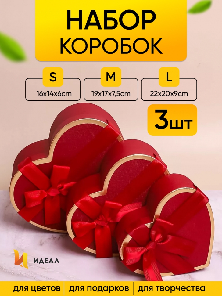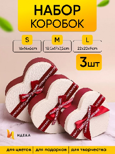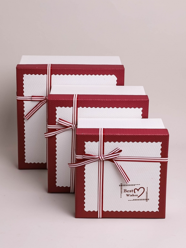 Коробка подарочная Сердце 22х20х9/19х17х7.5/16х14х6см 3шт/наб золотая кайма с бантом винный 00105798