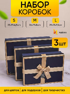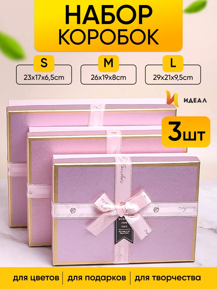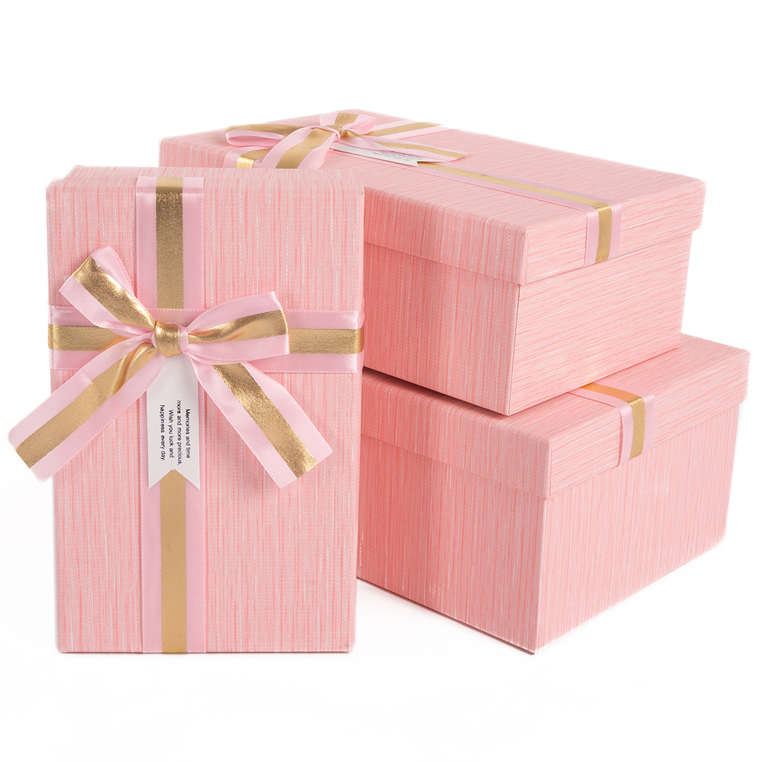 Коробка подарочная прямоугольник 29х21х9/26х19х8/23х17х6см 3шт/наб Золотая окантовк розовый 00101762