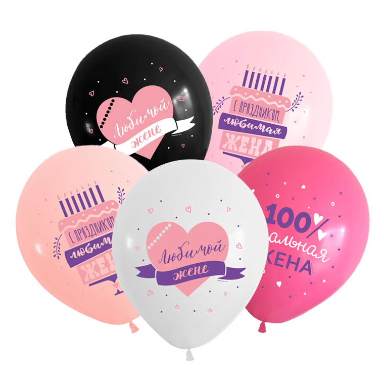 Шар латексный 12"(30см) "Веселый праздник"ТМ с рис Любимой жене пастель ассорти 10-50шт/уп 412520-50