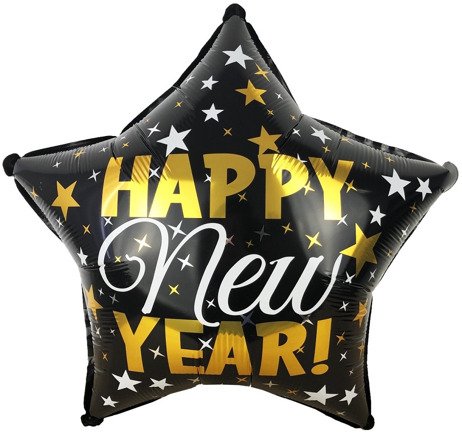 Шар фольгированный Звезда с рис 22"(56см) "Falali"ТМ С Новым Годом!(расноцв конф)черный 1шт/уп 13257
