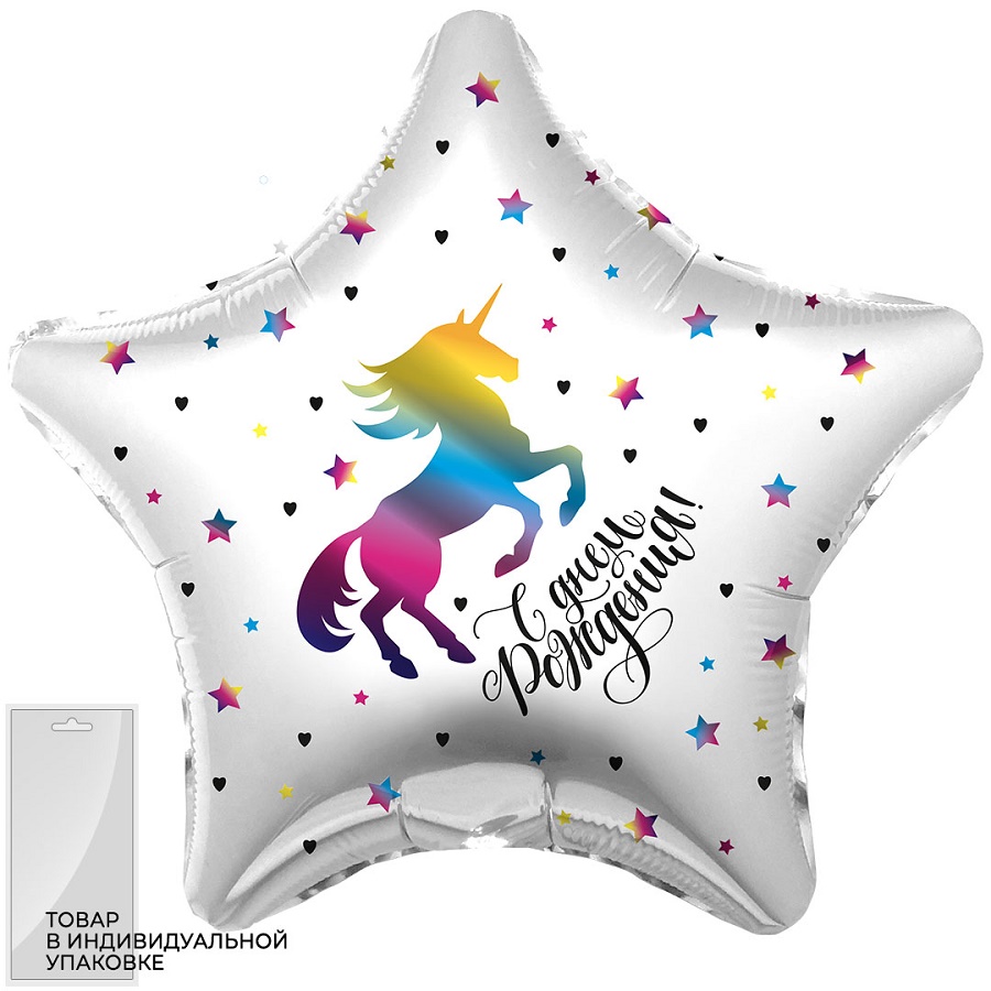 Шар фольгированный Звезда с рис 18"(46см) "Веселая Затея"ТМ С Днем рождения! черный 1шт/уп 1202-4054