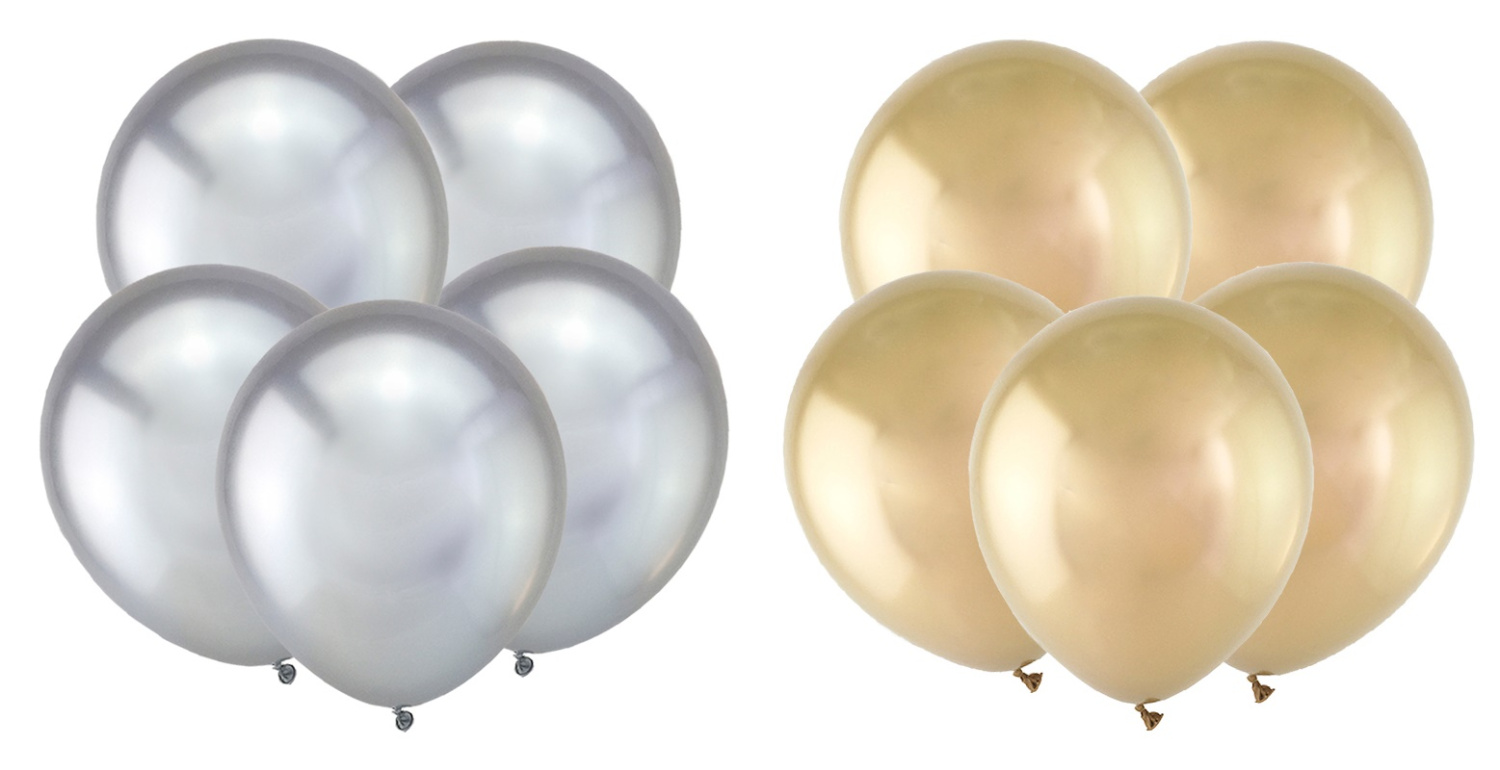 Шар латексный 12"(30см) "Веселый праздник"ТМ Хром (металл) Зеркальные шары бел золото 50шт/уп 212208