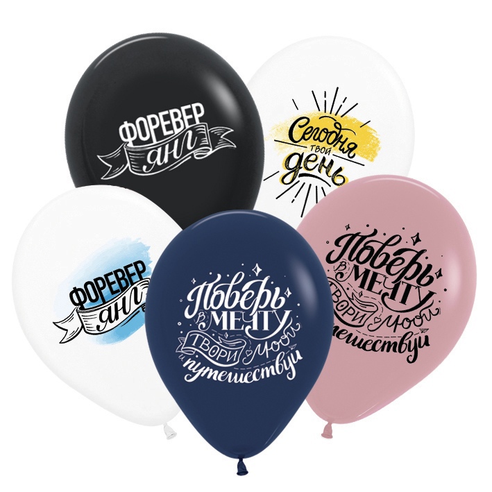 Шар латексный 12"(30см) "Sempertex"ТМ с рис СДР Пожелания пастель крист 3дизайн ассор 50шт/уп 612223