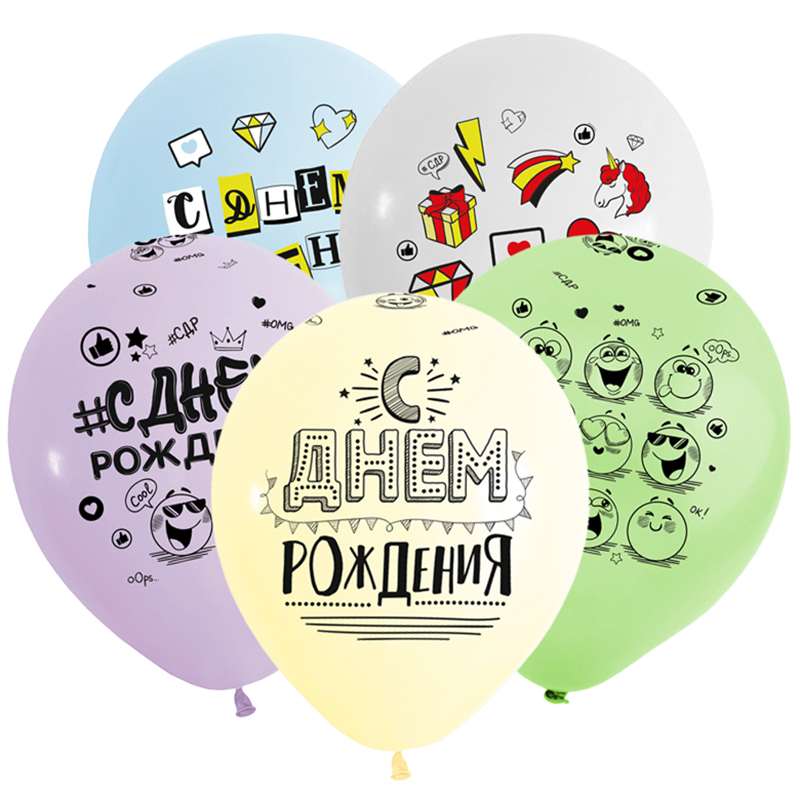 Шар латексный 12"(30см) "Веселый праздник"ТМ с рис СДР Комплименты пастель ассорти 50шт/уп 412492-50