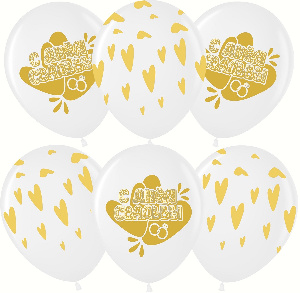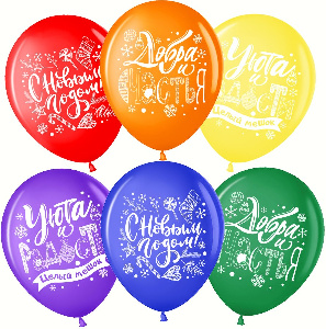 Шар латексный 12"(30см) "Волна веселья"ТМ с рис С Новым Годом! белый 200 красный 230 пастель 25шт/уп