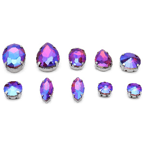 Стразы пришивные "Астра" хрустальные в металл цапах форма страз МИКС зеленый AB 10шт/уп 626873 МФ-25